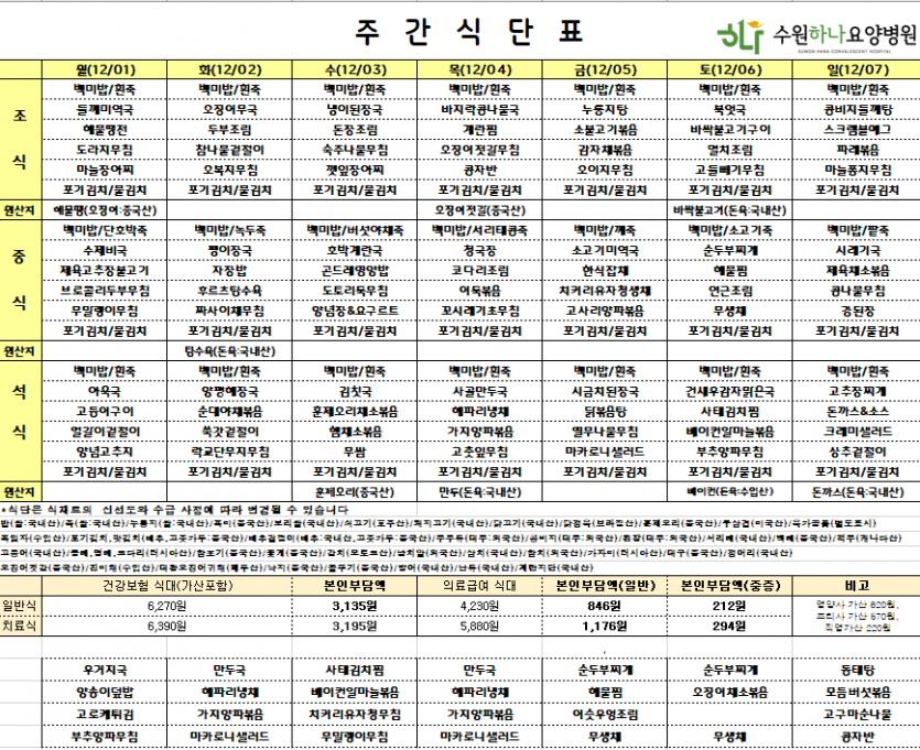수원하나요양병원 25년 12월 첫째주
