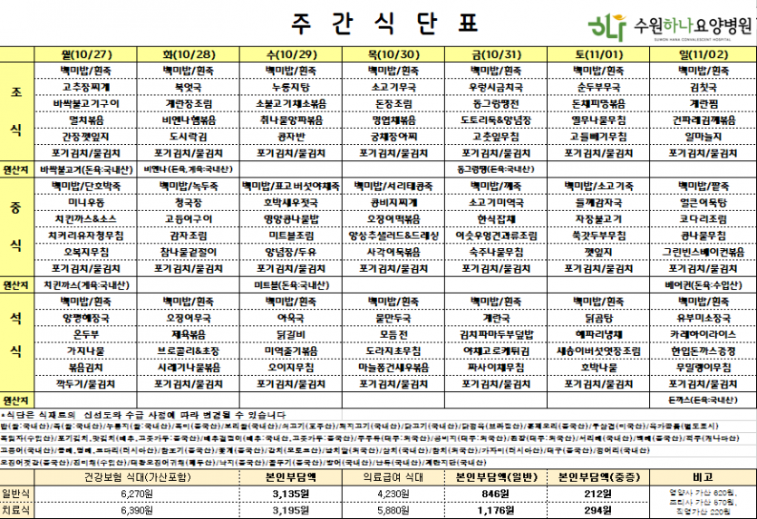 수원하나요양병원 25년 10월 마지막주